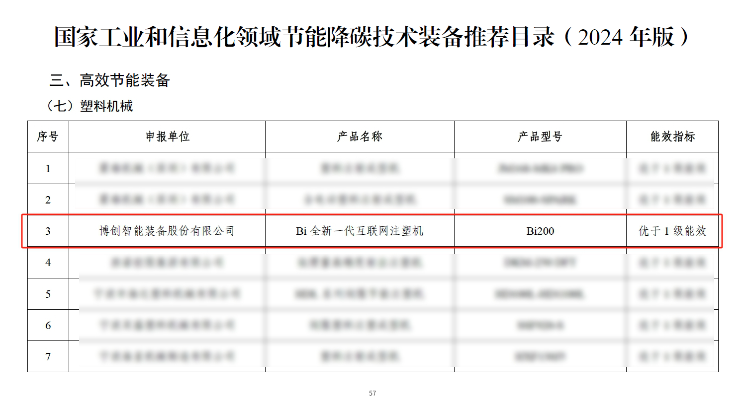 近日,博創(chuàng)自主研發(fā)的全新一代互聯(lián)網(wǎng)注塑機(jī)Bi200,憑借卓越能效和創(chuàng)新綠色技術(shù),領(lǐng)先入選國(guó)家工信部發(fā)布的《國(guó)家工業(yè)和信息化領(lǐng)域節(jié)能降碳技術(shù)裝備推薦目錄(2024年版)》。這標(biāo)志著博創(chuàng)在綠色制造領(lǐng)域的突出貢獻(xiàn)與行業(yè)領(lǐng)先地位。