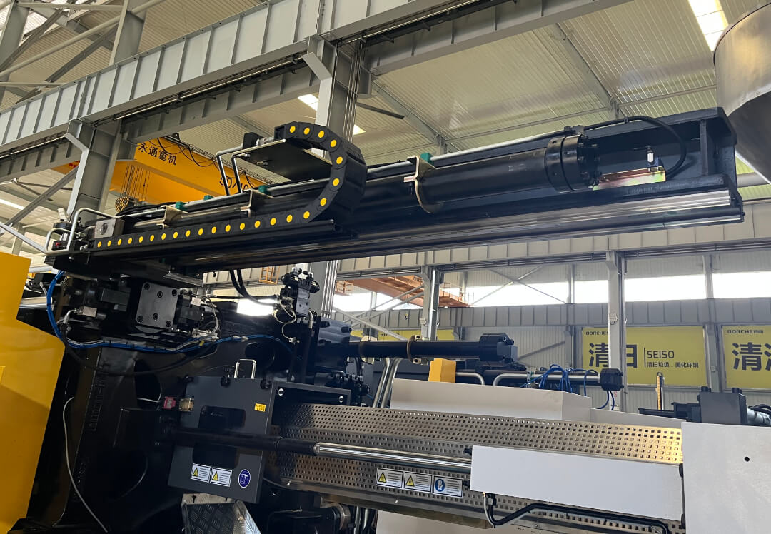 大型二板注塑機以其精簡的機械結構和優越的性能,比傳統曲肘式機型更勝一籌。在拉桿間距相同情況下,整機總重量減少大約18~25%,總長度減少大約25~30%,容模尺寸同比增大10%以上,最大模板間距大10~30%。移模行程的柔性設計,為客戶提供定制化生產的便捷。