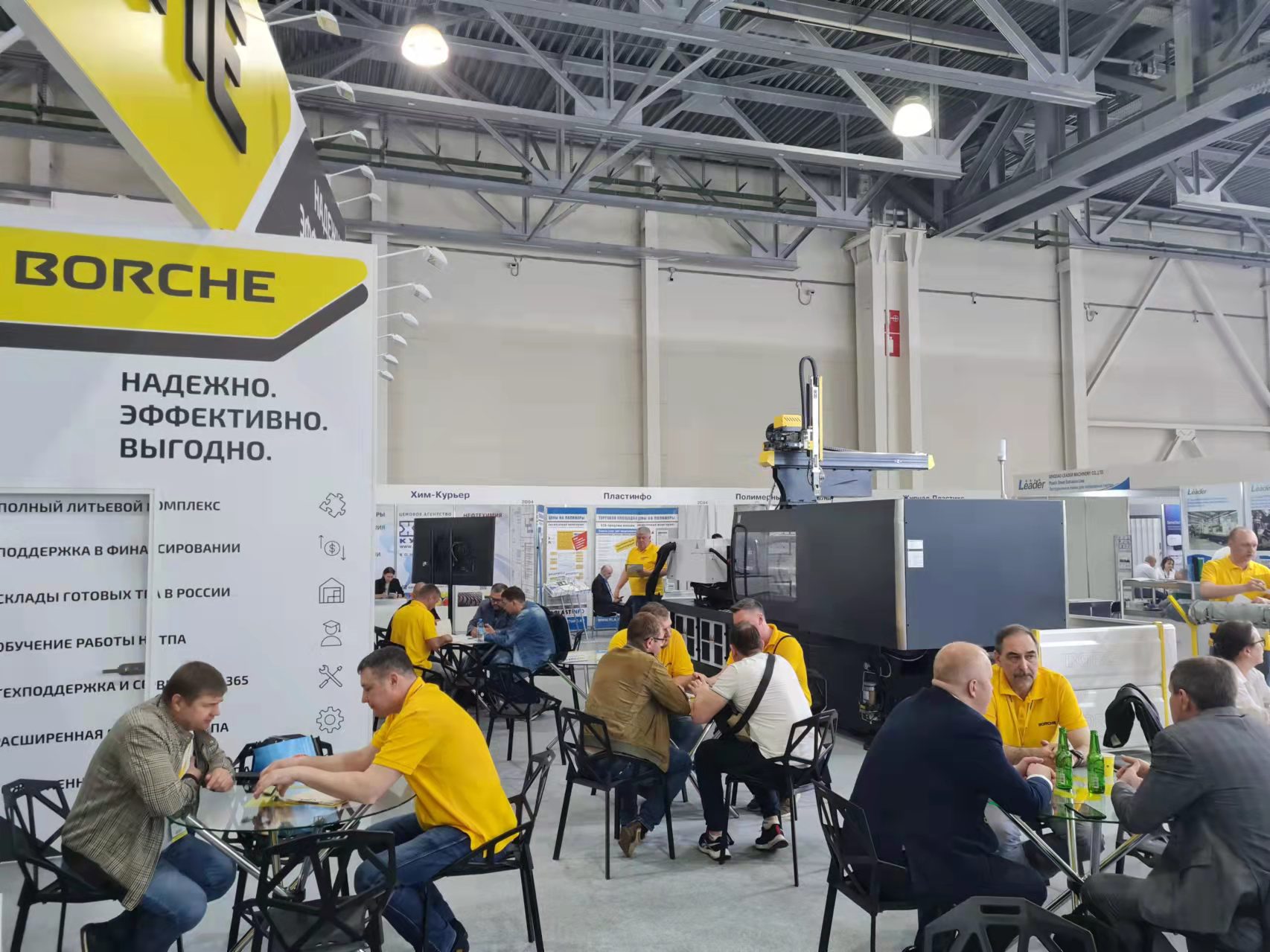 博創(chuàng)作為俄羅斯最主要的注塑機(jī)進(jìn)口品牌之一,本次展出以高端全電機(jī)BE160為主的一整套注塑方案。該方案從原料的干燥,輸送,到注塑成型,最后由博創(chuàng)機(jī)械手取出和修剪水口,全程自動(dòng)化,更配以博創(chuàng)注塑云智能互聯(lián)系統(tǒng)支持生產(chǎn)過程監(jiān)控、工單派發(fā)、在線檢測(cè)機(jī)器等功能。全電機(jī)BE160更是具有精密穩(wěn)定、快速高效、智能互聯(lián)等優(yōu)勢(shì)。展會(huì)期間,博創(chuàng)展位2С07客流絡(luò)繹不絕,反響熱烈。開展第一天,便有兩臺(tái)注塑機(jī)售出。